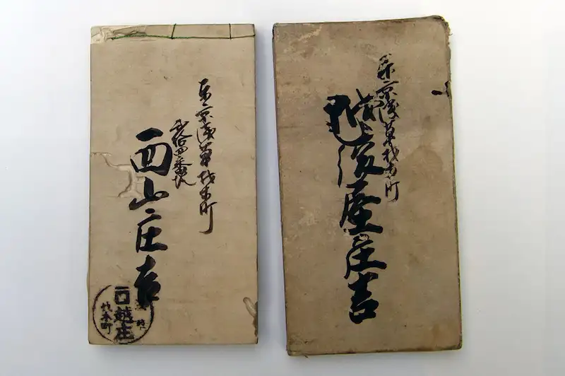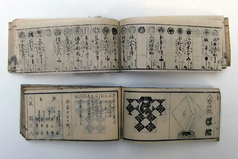 明治時代以前のものでしょうか、背に当店の創業時からの紋があります。
